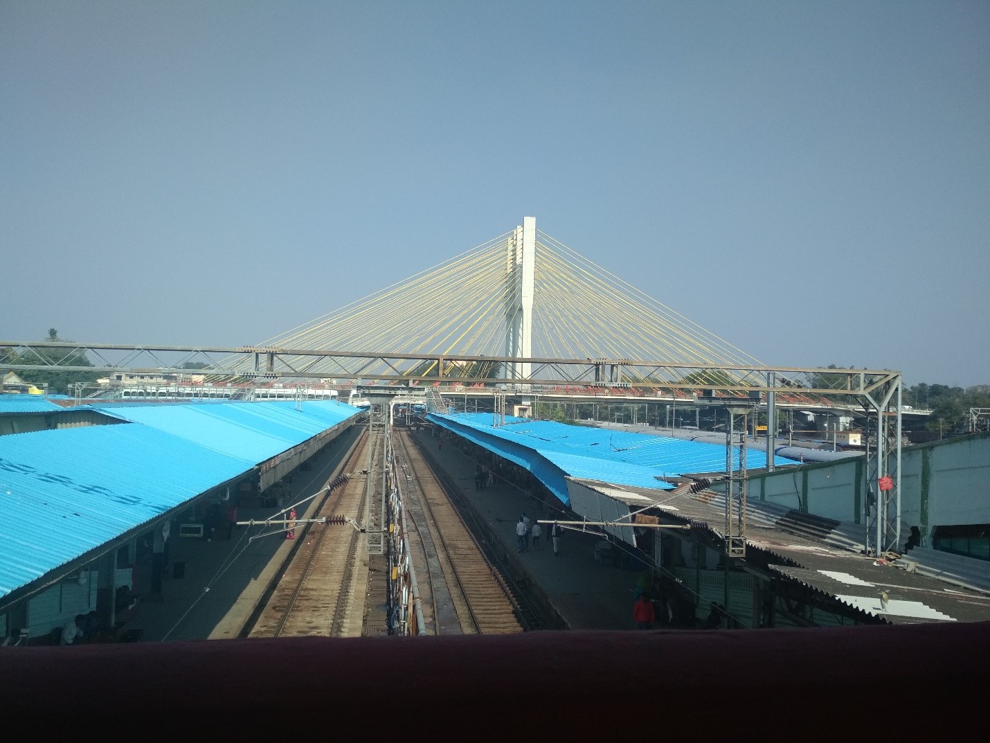There is a bridge just outside the station, which clearly resembles the 2nd Hooghly Bridge back home, which connects Kolkata and Howrah. Here is a picture I took.